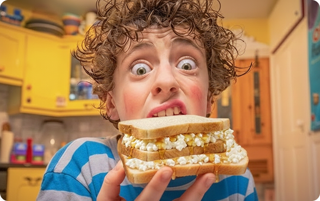Each child wants a different sandwich with specific instructions, causing confusion and frequent mistakes.